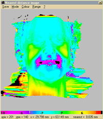 | Range | Pops up a window for adjusting the range (in mm.) of the map. Altering the range causes a re-calculation to be performed Selecting a large range reduces the colour variation and may assist when trying to view profiles. | |