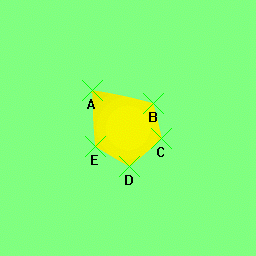 The menu also contains a selection of different brush styles for painting regions. The first four brushes are the same size and shape as the white part of the cursor, the last two paint a stripe the full height or the full width of the screen respectively. The fifth brush is an adjustable sized spot which can be varied in size from 1 to 50 pixels. If a region is outlined with a brush, the patch in the middle can be painted in by clicking on the flood fill button and then clicking, with either the left or right button as appropriate, inside the region to be filled. Only a region with a closed boundary will be filled. Clicking outside the main window aborts the flood fill mode.