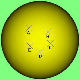 The menu also contains a selection of different brush styles for painting regions. The first four brushes are the same size and shape as the white part of the cursor, the last two paint a stripe the full height or the full width of the screen respectively. The fifth brush is an adjustable sized spot which can be varied in size from 1 to 50 pixels. If a region is outlined with a brush, the patch in the middle can be painted in by clicking on the flood fill button and then clicking, with either the left or right button as appropriate, inside the region to be filled. Only a region with a closed boundary will be filled. Clicking outside the main window aborts the flood fill mode.