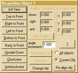 The sensitivity of the system to mouse movement and cursor keys can be altered by changing the angle increment (which defaults to 1 degree). The return key must be pressed in the edit box for the increment to be updated.